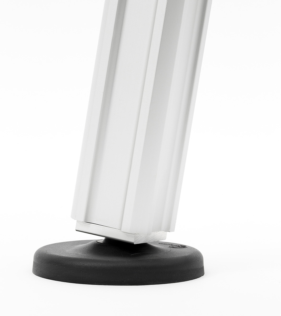 The rotating adjustable base D120 mm (4 ¾’’) of the Simplex meat rail is ideal for installations where the floor is not uniform. It’s the alternative to the fixed base.